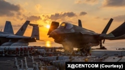 مرکزي قوماندانۍ دا تازه عملیاتي معلومات د پنجشنبې په ورځ د ایکس پر ټولنیزې شبکې کې خپاره کړل او ورسره یې د امریکايي جنګي الوتکو ویډیو هم خپره کړه چې پکې ښکاري توغندي د ایران د رژیم پر پوځي هدفونو لګېږي.